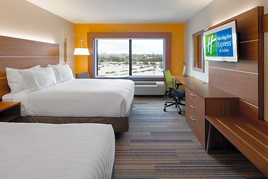 This suite features a separate seating area with a sofa bed and a 43-inch flat-screen HDTV.